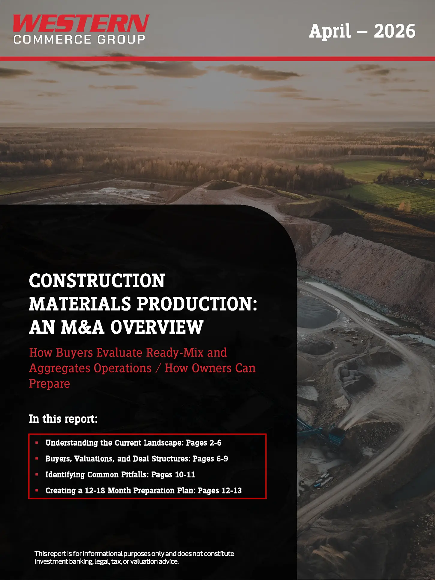 Western’s April M&A overview report covers the construction materials production industry, including ready-mix, sand, gravel, and quarrying operations. Inside, you will find detailed insights into what buyers are looking for in this space, how deals get structured, and what you can do today to maximize value when the time to pursue a liquidity event arrives.